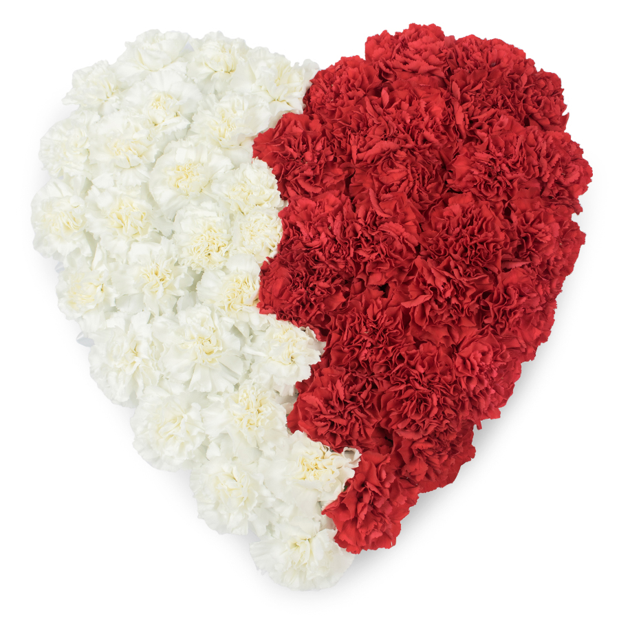 Embrace grace with our heart-shaped carnation bouquet, featuring a harmonious blend of white and red carnations. Each flower is hand-selected for its exceptional freshness and vibrant color, ensuring a graceful and enduring display.