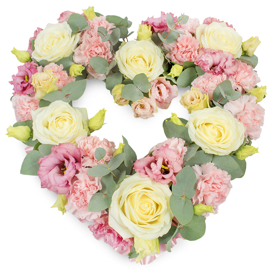 Celebrate the memory of a loved one with our Luxurious Remembrance Flower Arrangement. This exquisite bouquet showcases a vibrant mix of pure white roses, rosy pink carnations, silky pink lisianthus, and fragrant eucalyptus, meticulously arranged to convey heartfelt emotions.